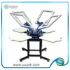 Special Features and Functions screen printing machine with rotary table 1. This silk-screen printing press completely overcomesthe disadvantages of the same price similar appearance silk-screen printing press, which can only overprint accurately in one or two stations . Before delivery all the printing head support arms have been accurately adjusted, so it can realize four color accurate registers in four stations after installation and debugging. In other words, it can be applied into multi-color printing by multiple persons simulteneously. It's unaccomplishable for the other screen presses with the same prices.